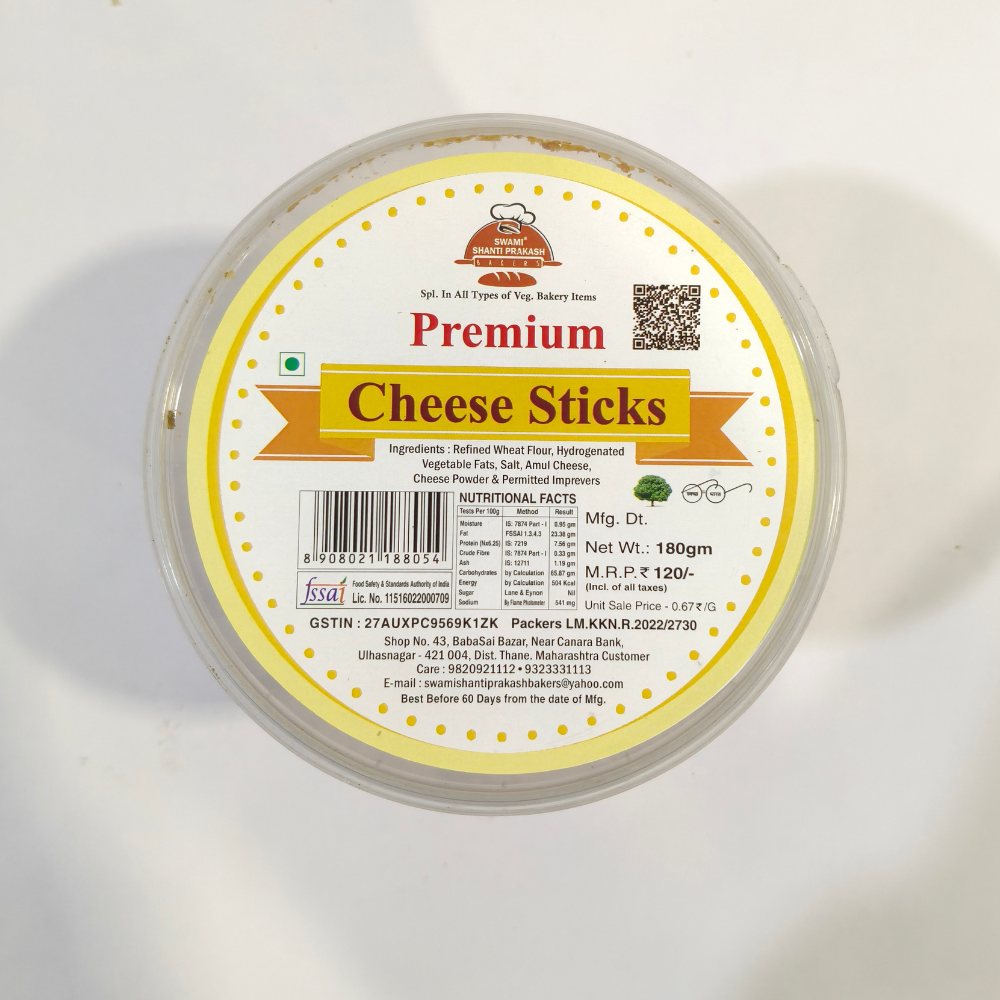 Perfect as a tea-time snack, party munchie, or anytime nibble, Cheese Sticks pair well with tea, coffee, or cold beverages. Hygienically packed in a transparent container to retain freshness and crispness, they are easy to store and convenient to serve.